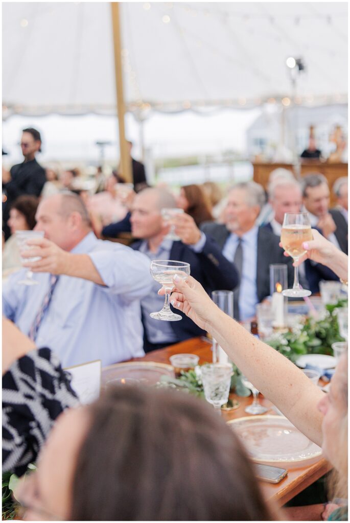 A live raw bar was set up with fresh oysters shucked on the spot, clam chowder steaming in small cups, and enough cheeses, breads, and cured meats to make any guest pause in happy disbelief. It was an experience that reflected who Ashley and Marco are… hospitable, thoughtful, and fun.