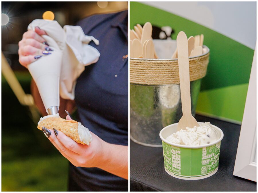 And as if that weren’t enough, dessert became its own event: trays of Italian cookies from New York City, a Ben & Jerry’s ice cream bar, cake, and freshly filled cannolis garnished right in front of guests. Late into the night, the unmistakable scent of Papa Gino’s pizza drifted through the air. It was a late-night surprise that had everyone smiling